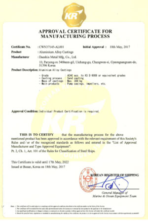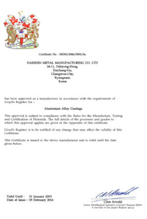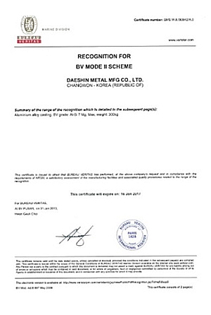 당사는 알루미늄 전문업체로 품질건전성 확보의 일환으로 IATF16949, ISO14001, DNV, BV, LR, ABS, KR, CCS, RS 인증서를 보유하고 있습니다. 이에 전직원은 품질향상에 진력을 다하고 있으며 양질의 제품이 고객에 인도되도록 최선을 다 할것을 약속드립니다.