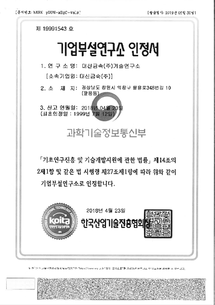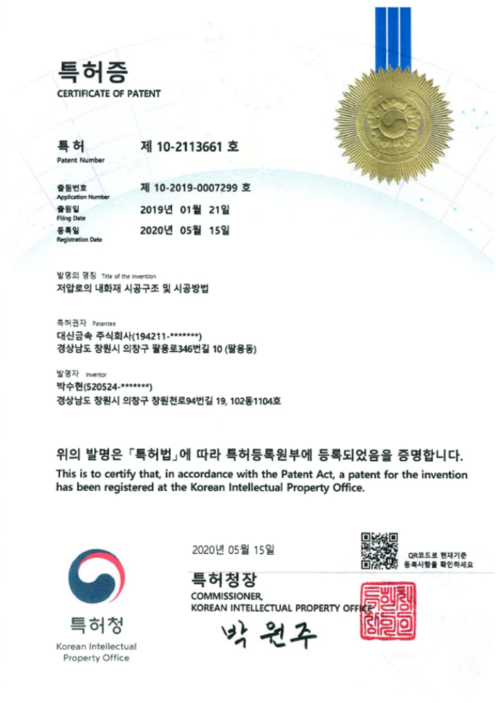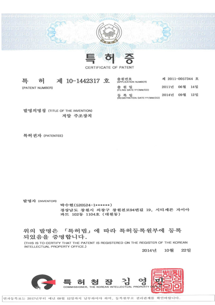 HOME > 연구개발 > 인증/특허현황