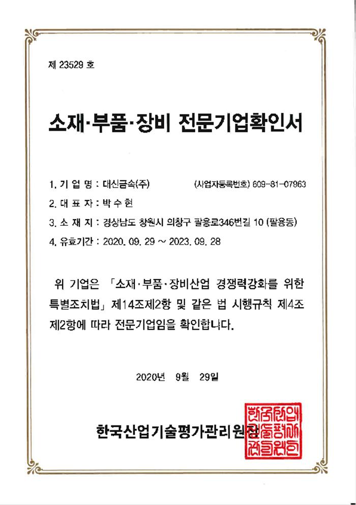 소재ㆍ부품ㆍ장비 전문기업 확인서